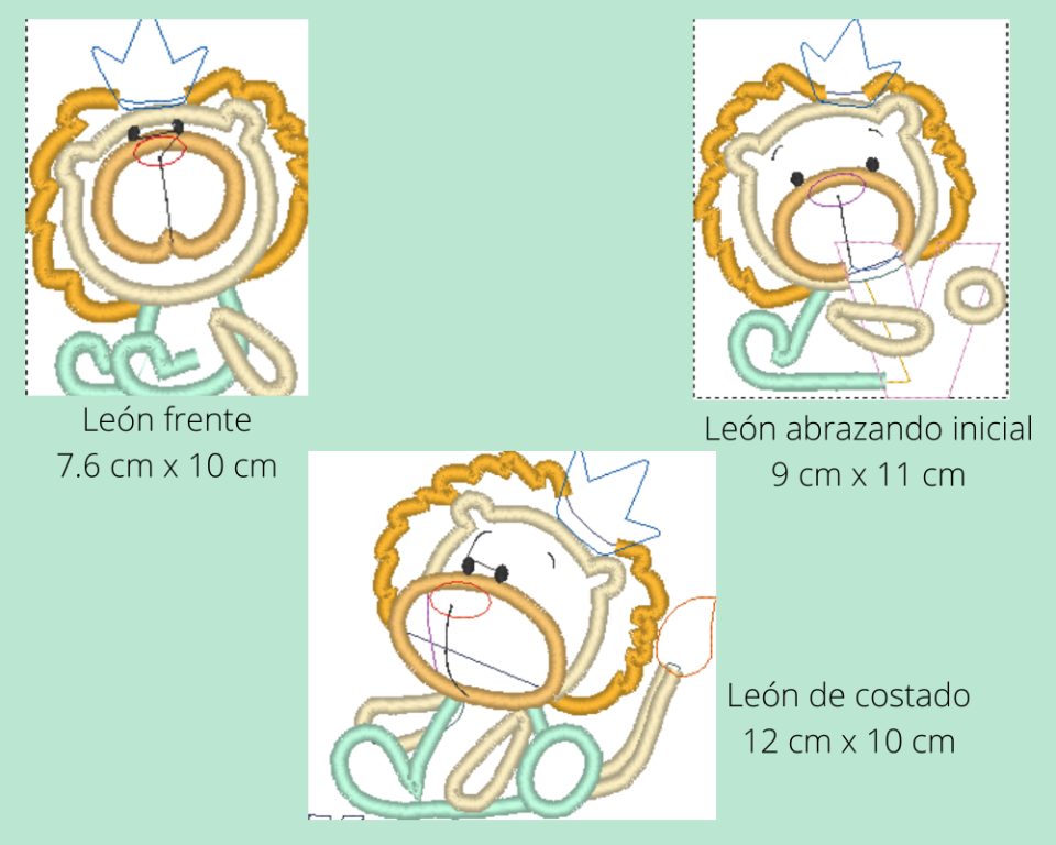 Son 5 matrices de un simpático Leoncito, el rey de la selva, en distintas poses.
